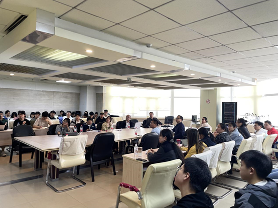 在讲座最后的互动环节中,针对各位老师和现场同学提出的问题,陈鹏老师进行了细致的解答,指出南朝《百家谱》与唐朝《氏族志》根本的不同点,进一步分析南朝士族及《百家谱》对隋唐时期的影响这一问题。最后,讲座在学生热烈的掌声中结束。