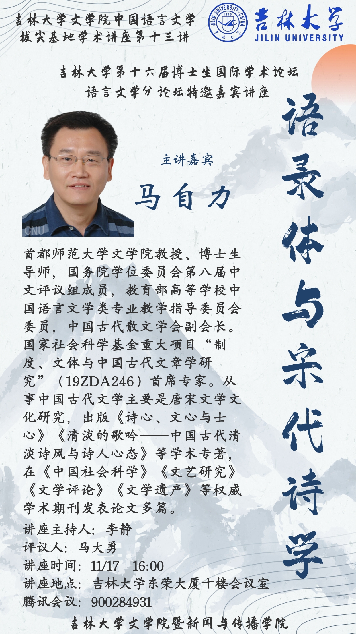 讲座题目:《语录体与宋代诗学》