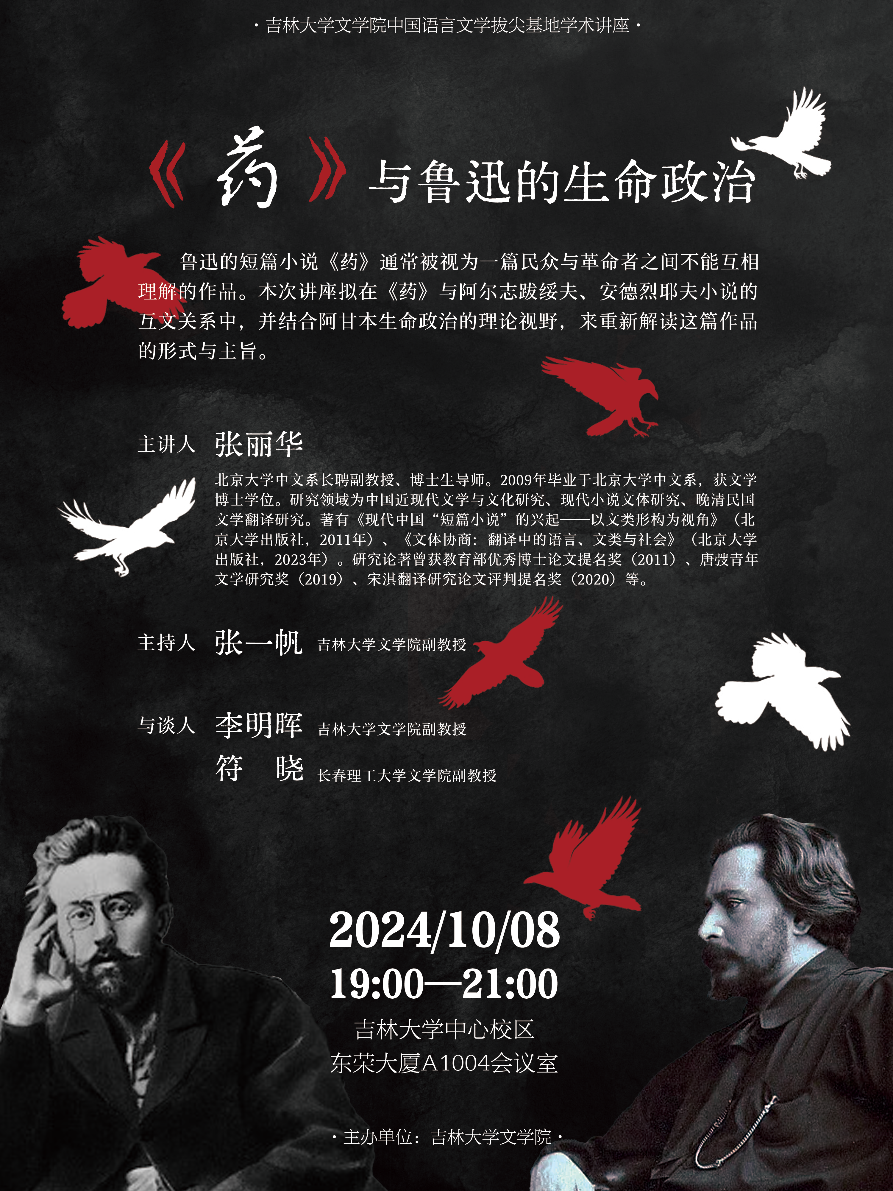 内容提要:鲁迅的短篇小说《药》通常被视为一篇民众与革命者之间不能互相理解的作品。本次讲座拟在《药》与阿尔志跋绥夫、安德烈耶夫小说的互文关系中,并结合阿甘本生命政治的理论视野,来重新解读这篇作品的形式与主旨。