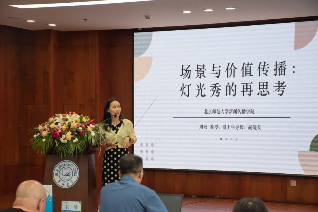 北京师范大学周敏教授从城市灯光秀这一微小的切入点讲起,以《场景与价值传播:灯光秀的再思考》为题指出,时至今日,城市文化的自信可以通过灯光秀来展现,以光为媒介讲述一座城的故事。周教授提出灯光秀由“美化”到“媒化”的过程,强调重视灯光秀的媒介化属性,小到城市形象,大到国家形象,小到旅游,大到文明,城市可以作为一种媒介,城市故事、城市精神也可以由此传播。灯光秀要做到共情,在共情中达到价值传播,从情绪中形成媒介记忆最终成为社会记忆。并提出“四看”的说法,希望城市文化传播从效果出发,灯光秀要让人“看得见”“看得懂”“看得下去”“看得有用”。