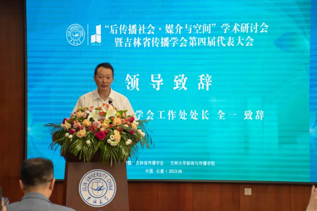 吉林省社科联学会工作处处长全一在致辞中表示,吉林省传播学会成果颇丰,受到了各界瞩目和认可。全处长向学会被评为“全国社科先进社会组织”表示祝贺,对学会未来的发展提出期盼和愿望,并指出社科联学会处一定积极对接、全力支持学会工作。