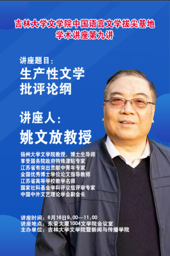 教授、博士生导师姚文放老师主讲的“生产性文学批评论纲”学术讲座在东荣大厦十楼会议室顺利举行。极速飞艇