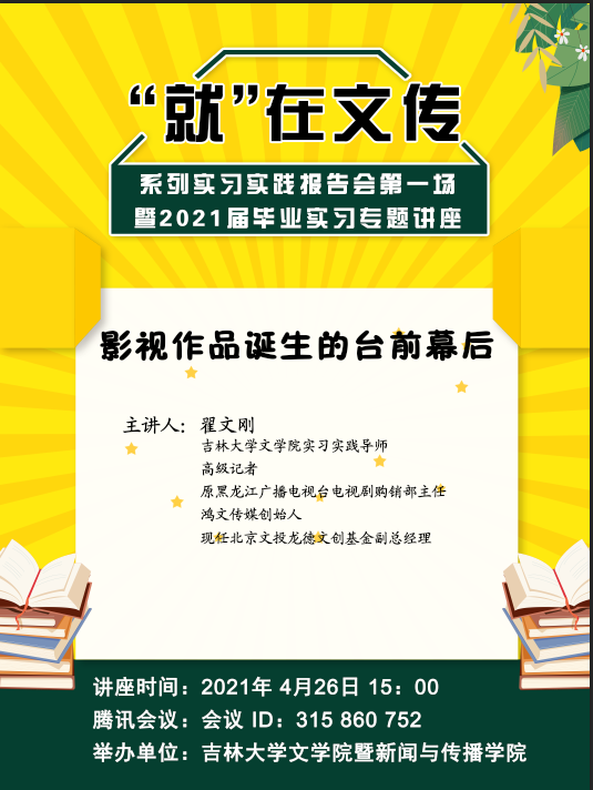 主办的“就”在文传系列实习实践报告会第一场暨2021届毕业实习专题讲座于腾讯会议平台成功开展。本次报告会邀请到极速飞艇