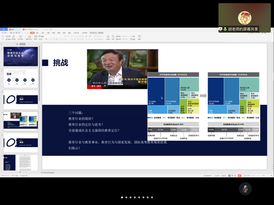 胡大鹏先生从教育行业从业问题入手,为同学们讲述了当今教育行业发展面临的机遇与挑战,以及对于未来整体行业发展展望。讲座中,胡老师以个人的实际工作经历和经验为出发点,讲述了对于教育行业发展的看法,对教育行业发展中的教资标准化现象也进行了剖析。同时,针对同学们提出的现阶段的教育方式的意义和未来就业方向如何具体选择的问题提出了以下几点建议:一要在满足自己最基本的生活保障的前提下,思考和调整个人对工作的期待;二要在对自己有认识和对社会有判断的基础上,作出正确的价值判断和人生追求选择合适的工作。报告会在师生的热烈互动中圆满结束。