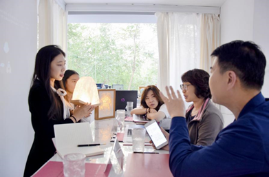 郝淑媛教授、院长助理校友办田鹏主任、办公室张谦谦老师赴懂你文化,双方针对大学生实习实践基地共建、院徽及文创产品设计开发进行了研讨。