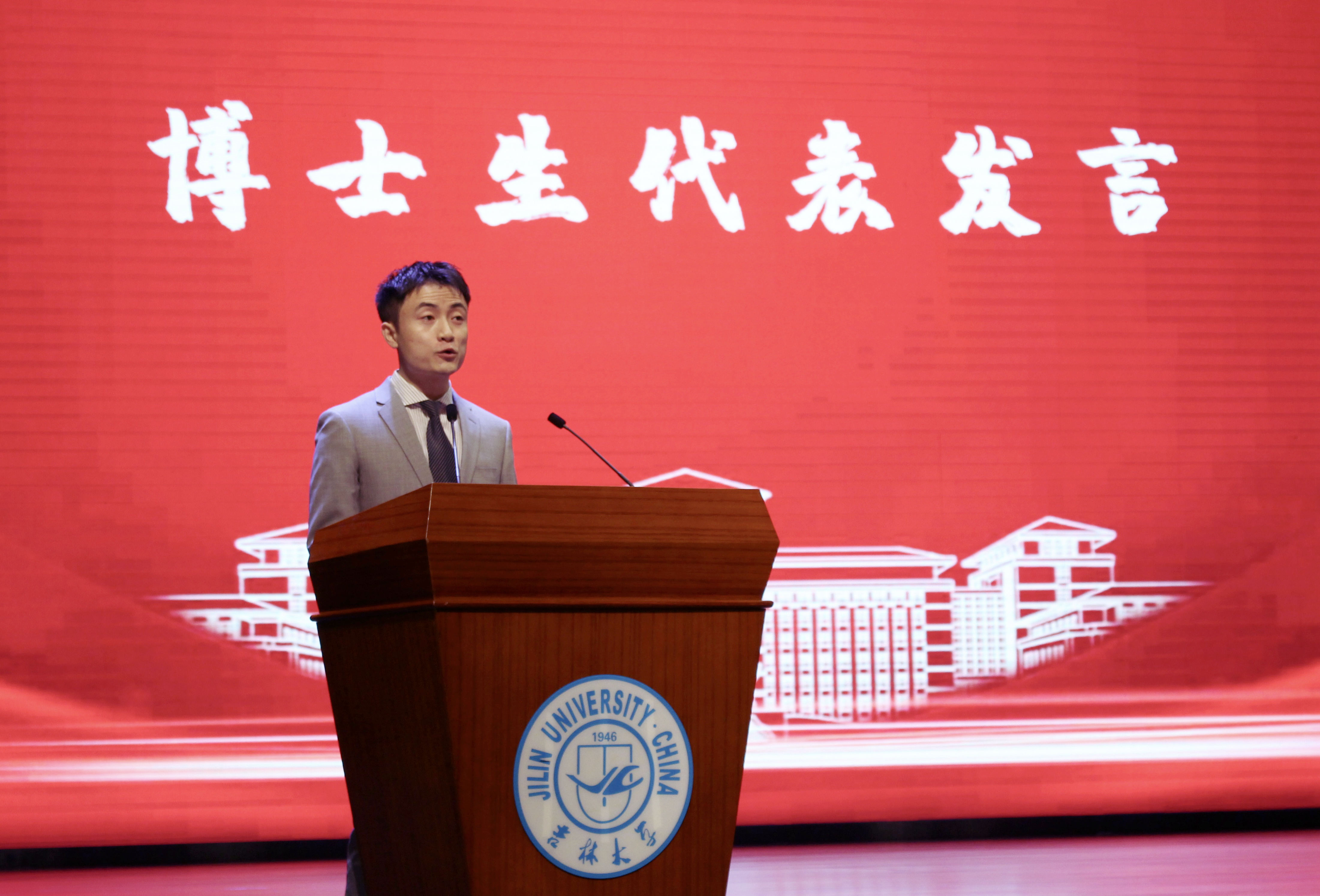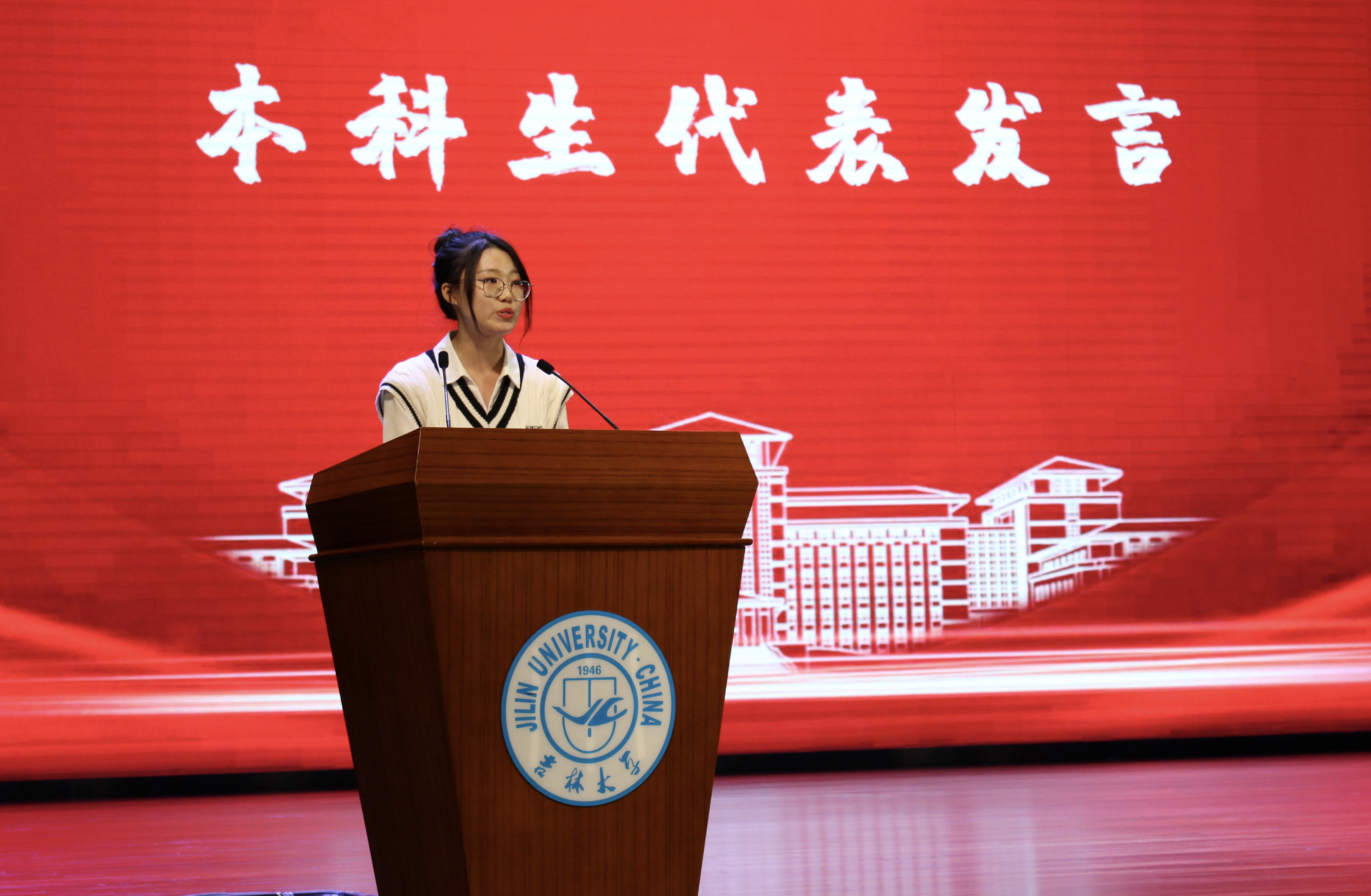 新闻传播学类韩昕桐同学发言。她表示,要牢记吉大的光辉历史,赓续吉大精神,努力学习专业知识,与党和国家同呼吸、共命运,与中华民族伟大复兴齐步伐。