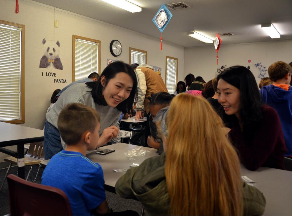 图02:吉大学生教美国小学生学中文。