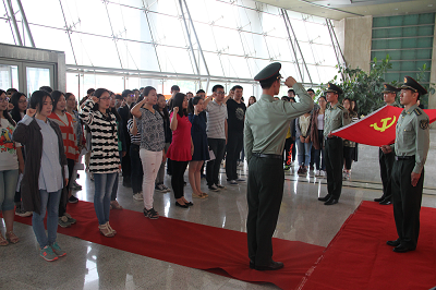 仪式结束后,领导、来宾与同学们在讲解员的带领下,共同参观了“关东抗日英烈珍闻展”。讲解员感情饱满的讲述,大家静静地聆听,每一个故事都听在心里,记在心上。最后,新发展党员面对党旗郑重宣誓,以史为鉴,感恩先烈,砥砺前行!巡展启动仪式圆满结束。