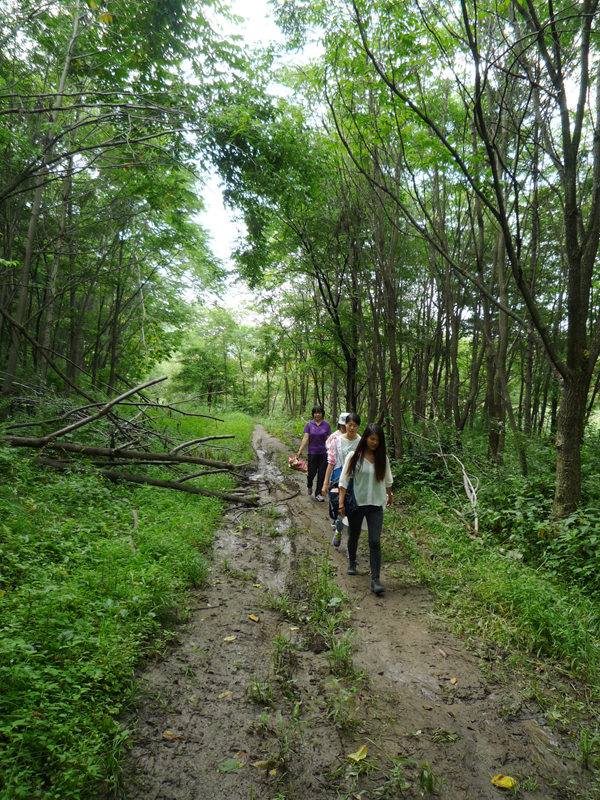 图16,调研团队为调研那尔轰会师地遗址而行走在山间泥泞的小道上