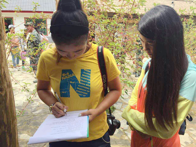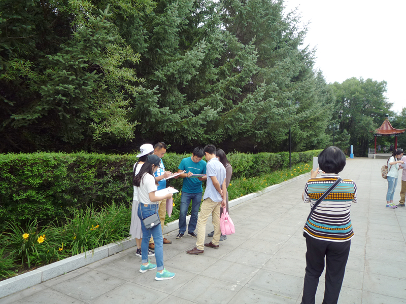 图14,调研团队在杨靖宇将军殉国地景区内做游客问卷调查
