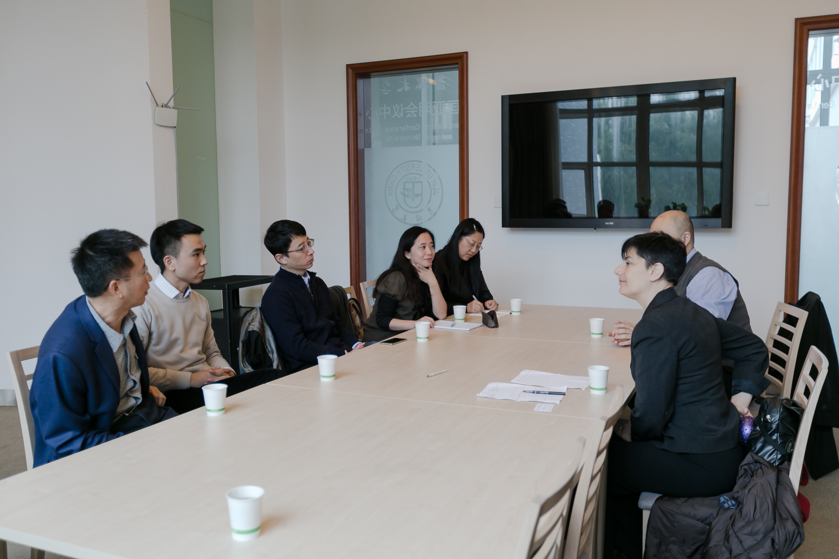 ,与中国语言文学系主任沈文凡教授,世界史系主任任东波教授,外国文学专业金铖博士、宁欣博士、王天红博士进行会谈。
