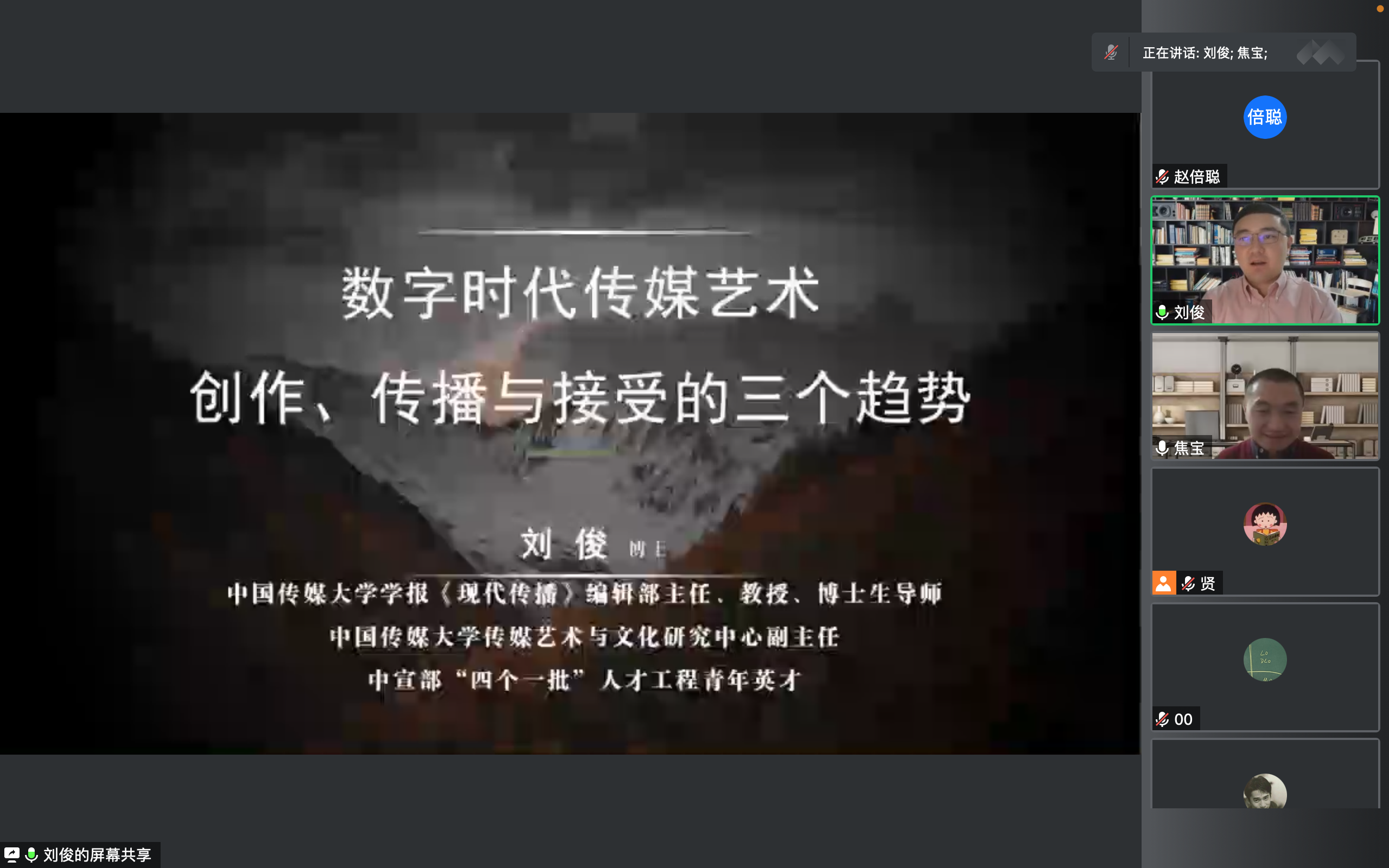 、“新闻传播+”研究生学科交叉融合学术交流分中心以线上讲座的形式,特邀中国传媒大学教授、博士生导师刘俊。以“数字时代传媒艺术创作、传播与接受的三个趋势”为题,为各专业研究生进行了深入讲解,推动了各学科间的相互交流。新闻与传播极速飞艇