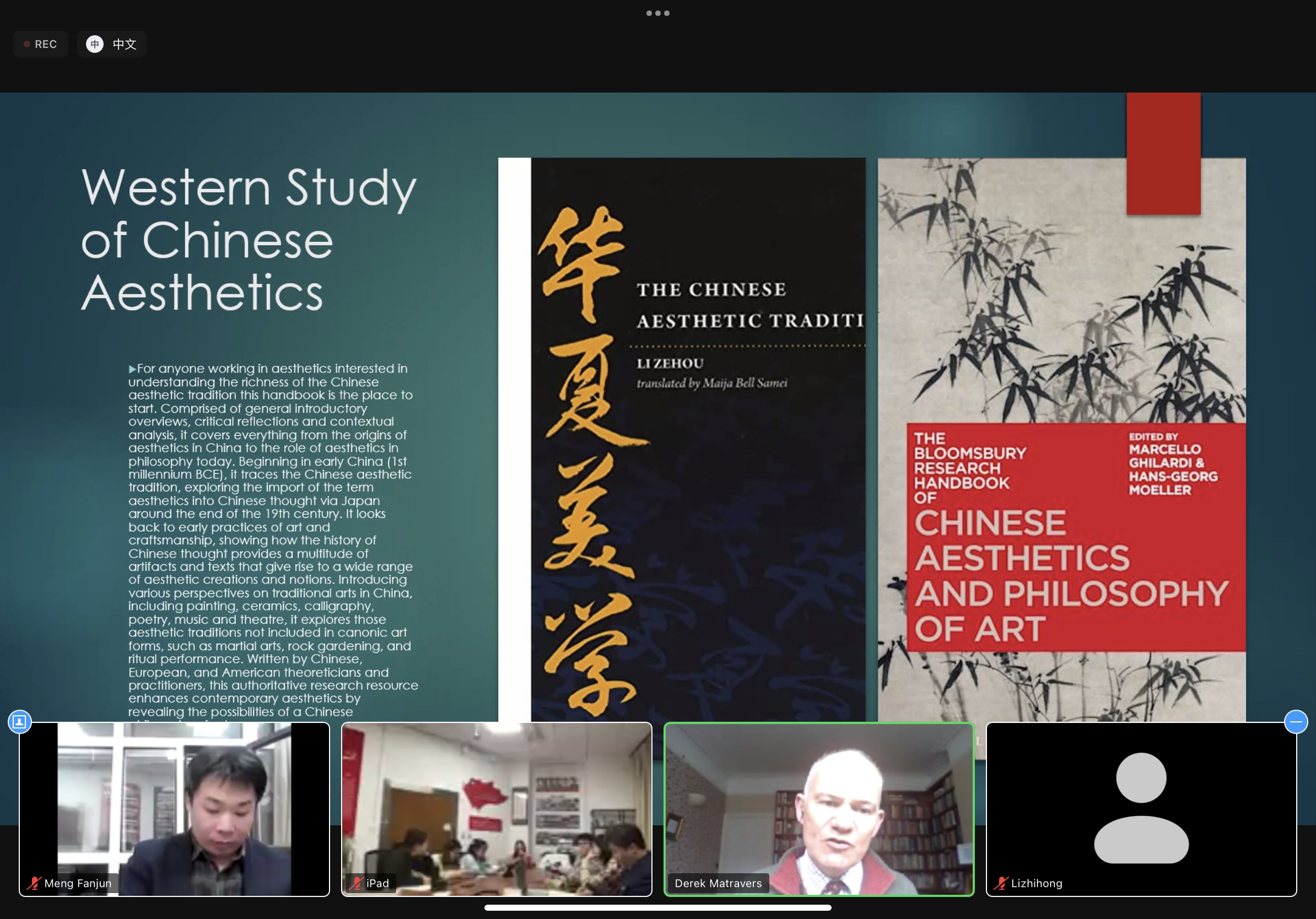 Derek Matervers教授首先从西方哲学“分析哲学”和“大陆哲学”的两个传统引入,回顾了分析美学的近代发展。纵向上,他从分析美学诞生的奠基人G. E. 摩尔到五六十年代战后时期所产生的分化进行了梳理;横向上,从审美判断和批评哲学这两个层面进行了归纳出分析美学的核心议题。其次,Derek Matervers教授按照主题归纳出《英国美学杂志》近年来的发稿的类型,这些为老师和同学们以后的写作或了解分析美学的研究动态非常有帮助。接下来,Derek Matervers教授分享了美学近景中的热点问题:环境美学、文化美学、政治美学和比较美学。最后,Derek Matervers教授为老师和同学们提出了非常重要的论文写作建议,对于中西比较美学方向,以及师生们的日常写作具有重要的借鉴意义。最后,Derek Matervers教授表达了对未来美学发展的光明前景的确信,并期待着日后与极速飞艇