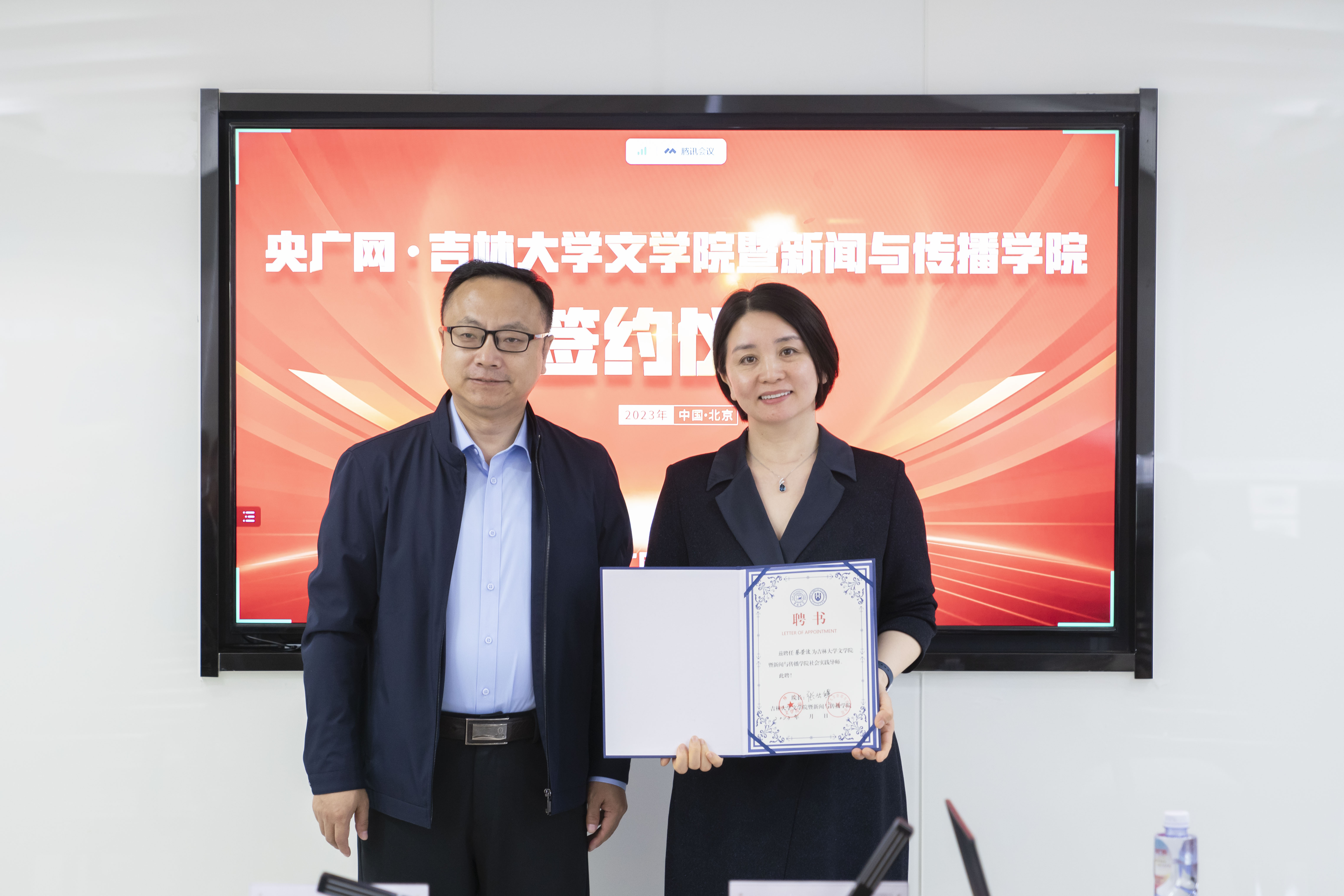 副书记杨一博、院长助理、校友办主任田鹏,学工办主任李芊满、新闻学系主任严俊教授等出席签约仪式。