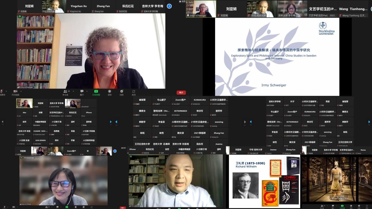 “文化融合·学术共建”系列讲座之一,本次的主讲嘉宾邀请到的是来自斯德哥尔摩大学亚洲与中东研究中心的Irmy Schweiger(艾米·施威格)教授。Irmy Schweiger教授的主要研究领域为中国文学、中德跨文化研究、文艺评论、城市文化等。本次讲座Irmy Schweiger教授为我们梳理了瑞典和德国中国学的缘起、发展以及现状,并对代表人物及其学术贡献进行了详细介绍。瑞典与德国的中国学研究具有悠久的历史并取得了丰硕的成果,已经形成风潮、形成传统、形成学派、形成规模。当代的中国学研究仍在继续发展,西方对中国社会、文化、历史、语言等领域的探索仍在进行。主讲人Irmy Schweiger教授以教师和研究者的双重身份,通过史实论证为我们创建出一个跨文化空间,促进听众对瑞德两国中国学研究的理解与认可。在交流互动环节,师生踊跃提问,Irmy Schweiger教授与线上师生进行了热烈的讨论,并耐心回答了师生们的提问。