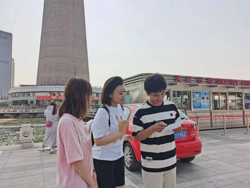 6月22日至25日,“寻迹”实践团前往天津、北京进行实地调研和问卷收集。在天津,调研组前往天津广播电视台,与前来参观的多名群众交流访谈,了解当地公众对于主流媒体的发展期待。