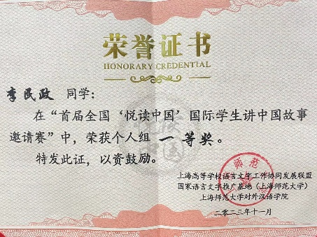 本科三年级的李民政(韩国)以其优秀的汉语表达能力和对中国文化的深刻理解、精彩讲述脱颖而出,荣获一等奖。极速飞艇