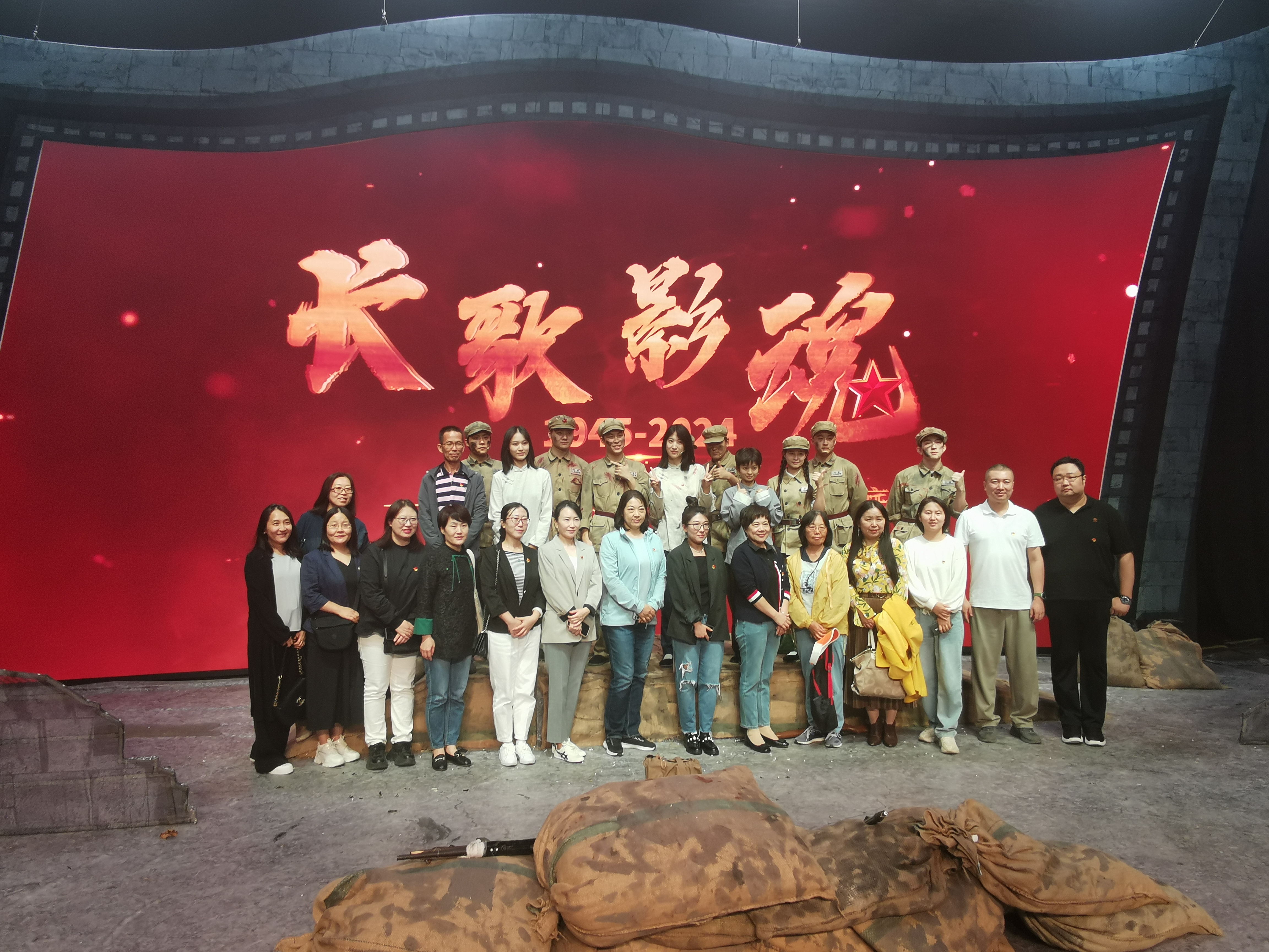 教师党员观看了舞台剧《长歌影魂》。《长歌影魂》是根据长影经典影片《董存瑞》《赵一曼》《英雄儿女》改变而成,运用生活片段与电影场景交织的手法,通过现代青年的视角讲述红色故事,将革命英雄的故事情景再现,完成了一场精彩的跨时空对话。