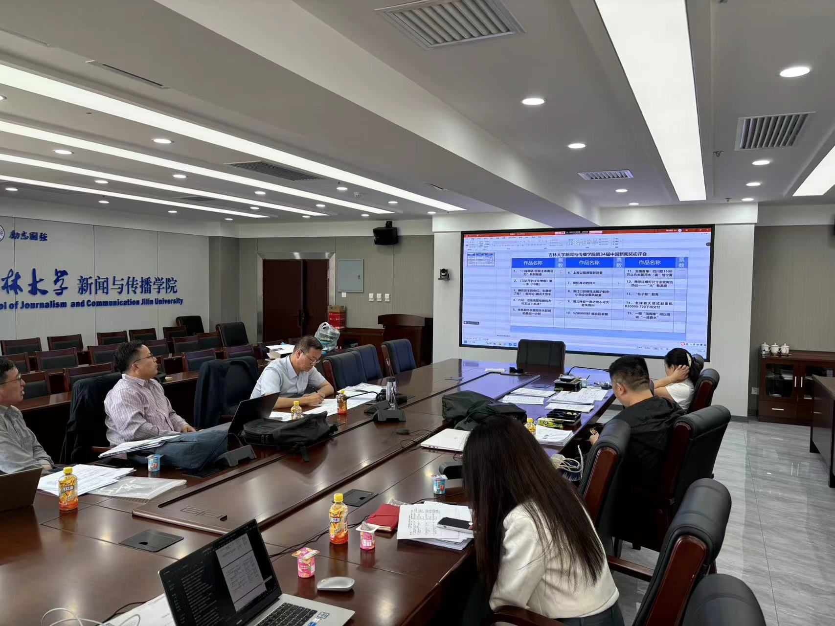 初评会上,评委们在认真评审作品。