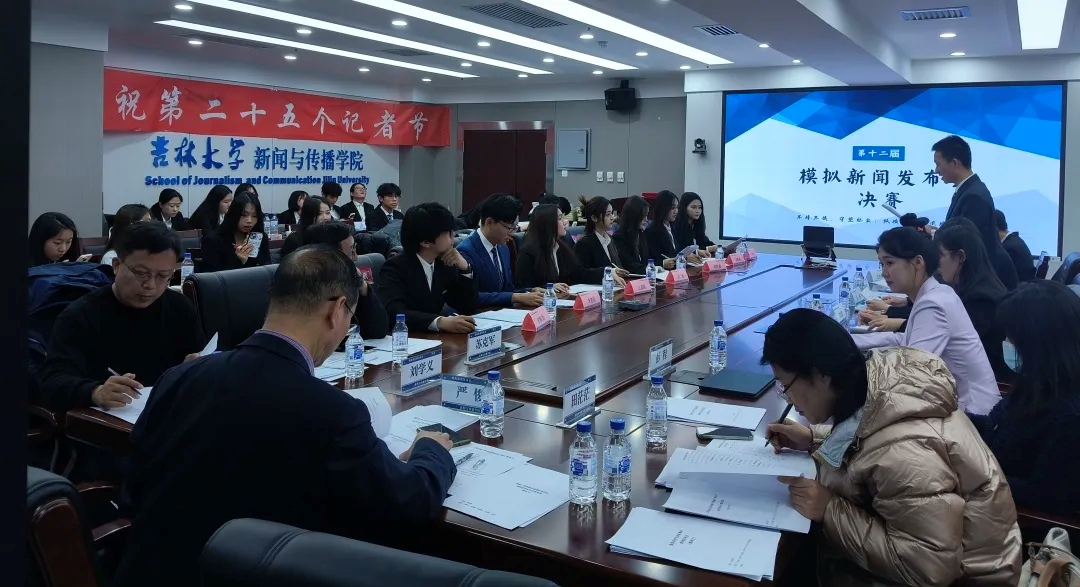 新闻学系第十二届模拟新闻发布会决赛在东荣大厦十楼会议室举行。
