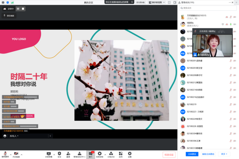 2000级播音与主持艺术专业的优秀校友郭丽莉老师,其作为主讲人分享了《时隔二十年,我想对你说》的就业体会,与会的上百位同学分别来自四个年级的历史、中文、播音主持、广播电视编导等多个专业。