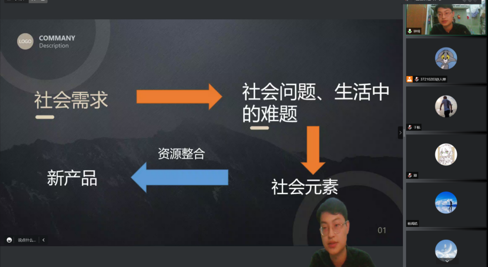 第三位主讲人,2018级播音与主持专业本科生杨子安,主要选择从“要不要创业”这个问题上为同学们分析大学生创业的利与弊。首先介绍了自己在创业过程中的经历,为同学们分析了“要不要创业”这个问题。同学们应当先明确自己的能力更适合探索何种领域,再判断自己应当参与到就业还是创业两种未来里。除此之外,同学们也应当充分意识到学生创业会遇到的种种问题与困境,要拿出勇气与毅力面对创业中的种种不可抗力影响与后果,建议同学们在明确自己的目标与状况后再参与到创业浪潮之中。