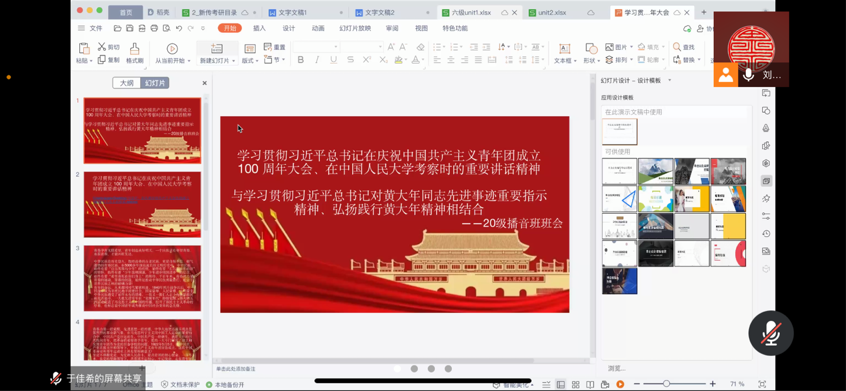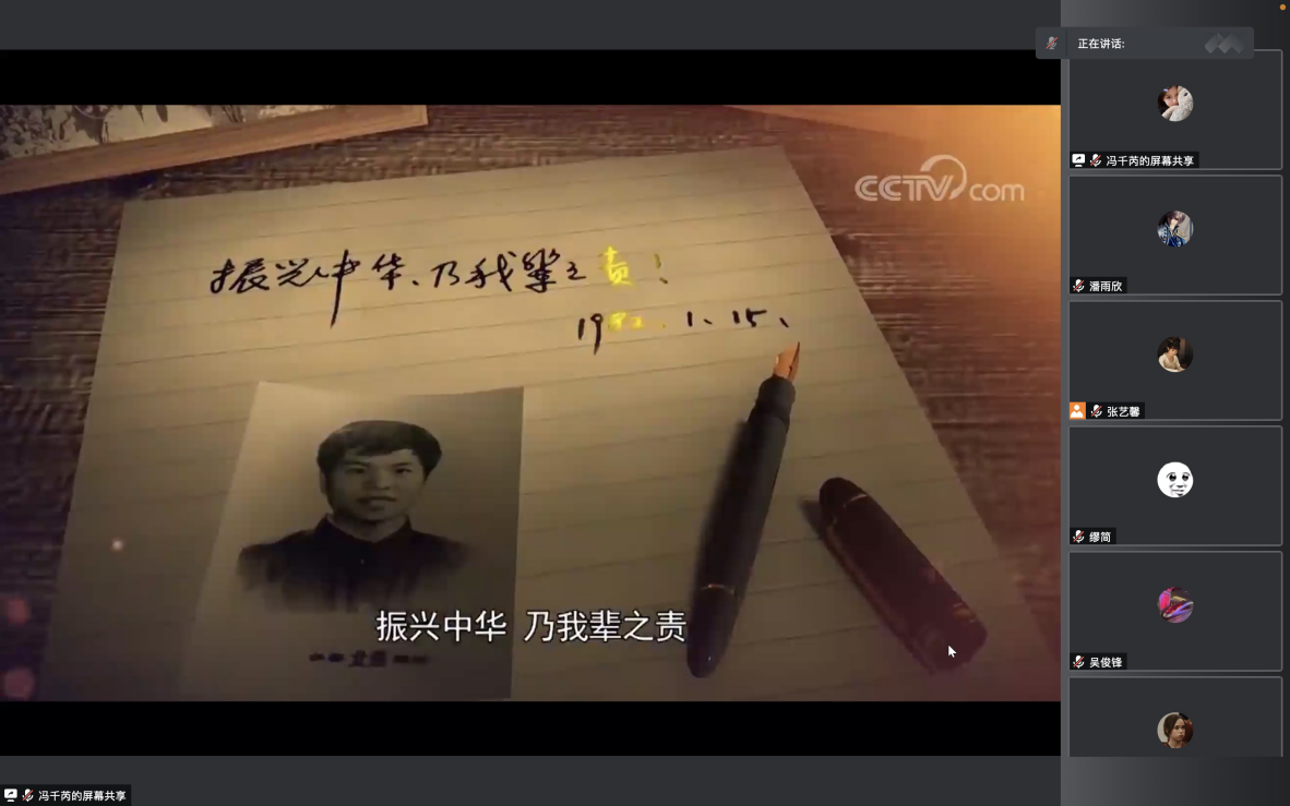 活动共有三个部分,分别是介绍黄大年老师生平事迹、观看学习视频、文章和数字纪念馆以及纪念习近平总书记对黄大年同志先进事迹作出重要指示五周年。在开始阶段,通过屏幕共享,大家一起观看了习近平总书记此次讲话的视频片段。今年正值中国共产主义青年团成立100周年,同学们深刻认识到,时代各有不同,青春一脉相承。“心有大我,至诚报国”的黄大年精神深深触动了每一位同学。接着,由团支书石欢然同学通过ppt为同学们进行了进一步具体讲解,主要包括对黄大年先进事迹、黄大年精神的具体内涵以及对黄大年精神的实践等的详细介绍。团日活动的结束阶段,同学们纷纷开麦分享,谈论对于这次讲话精神的学习感受与个人心得,在交流中共同进步。在团日活动的最后,大家对此次活动进行了总结。