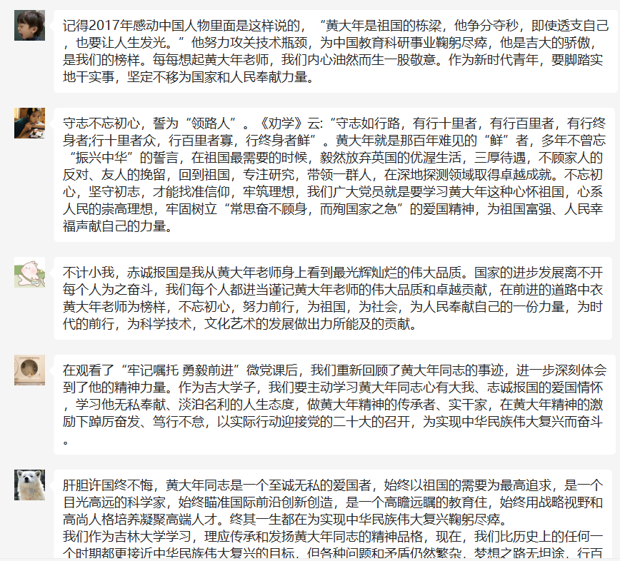 为学深悟透思想精髓,坚定理想信念,支部党员们在观看党课后,线上开展集体交流研讨,进行思悟分享。同学们在聆听姜治莹书记《学习弘扬黄大年同志高尚精神》主题微党课后,产生积极反响,引发热烈讨论。
