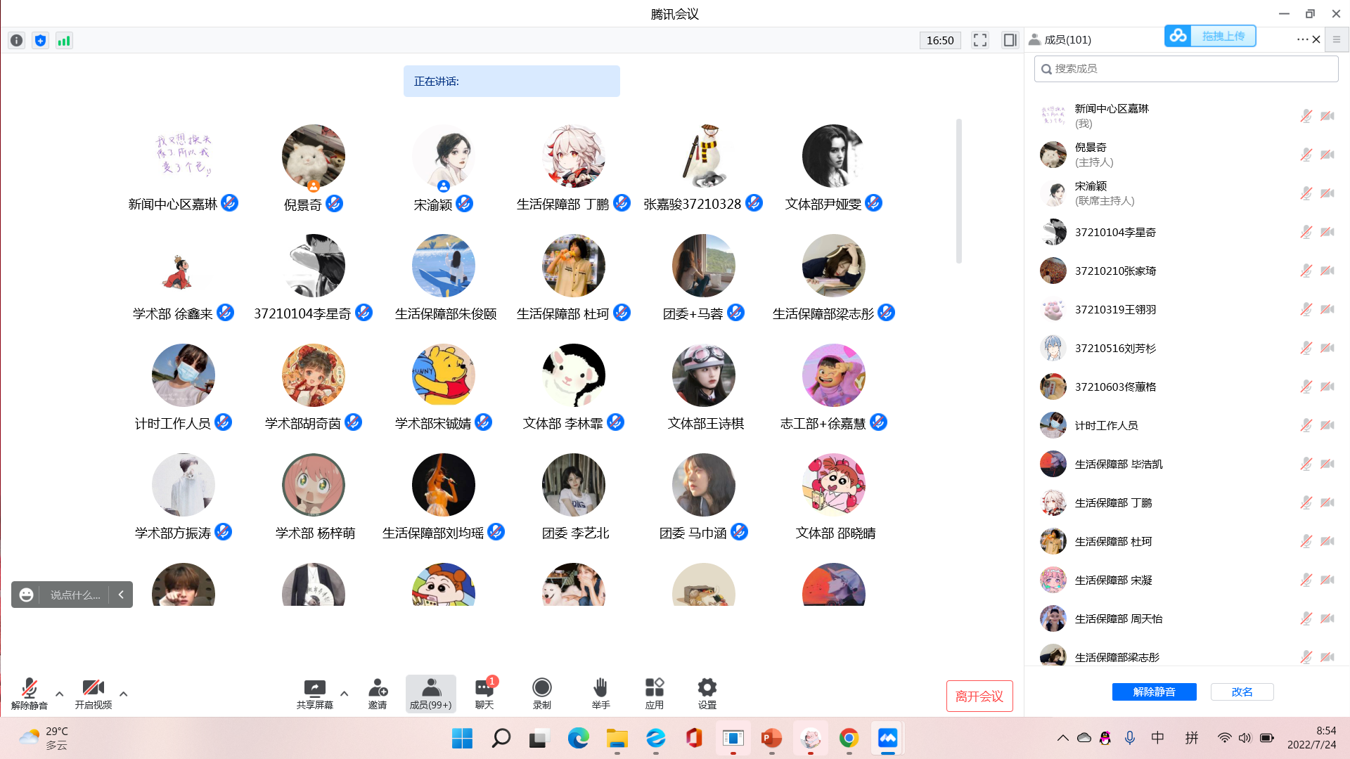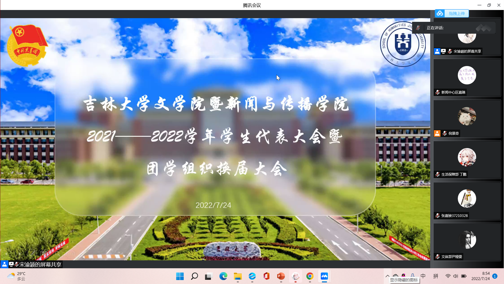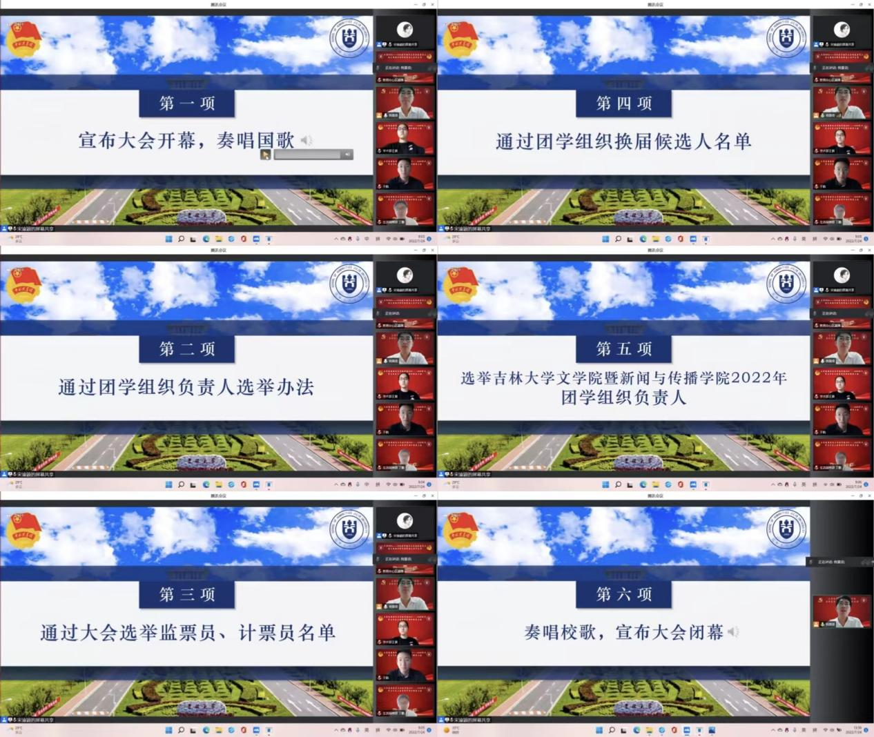 于7月24日上午9时,通过腾讯会议召开2021-2022学年学生代表大会暨团学组织换届大会。此次大会由院学生会主席团共同主持,李芊满老师、于航老师、曲昭琦老师、王振彰老师、团学组织各部门负责人和100余名学生代表参会。