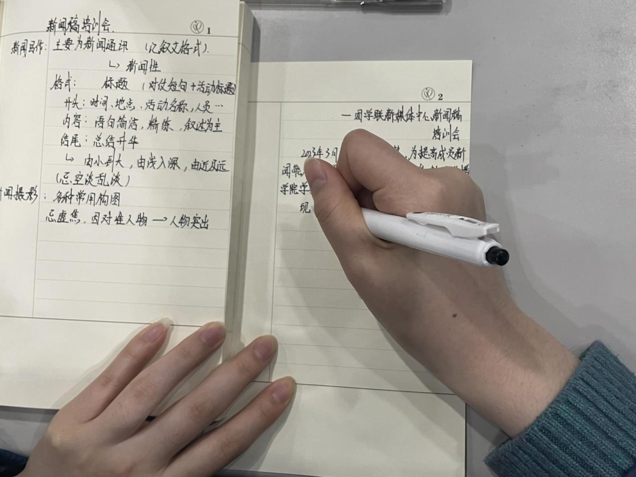讲解完成后,培训会进入实战训练环节。同学们要于现场写一篇新闻通讯稿,以此来巩固会上所学内容,大家均认真、热情地完成了此次写作任务。随后,陈实同学在同学们提交的新闻稿中选择了几篇作品加以点评,同学们收获颇丰。