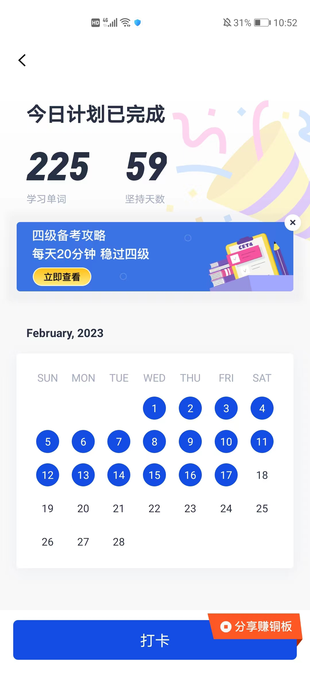 的227位同学参与到学习打卡活动当中。活动取得了良好的成果,于2023年2月17日圆满落幕。