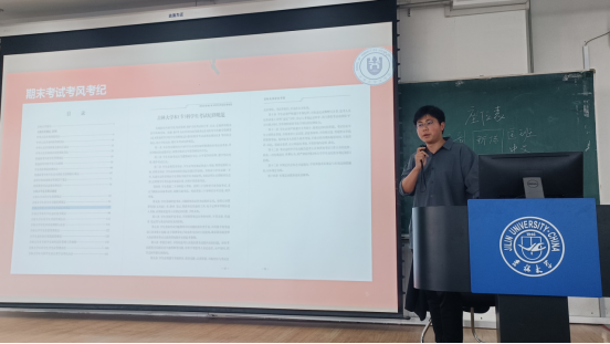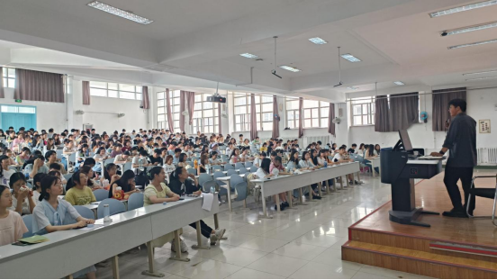 2022级辅导员王振彰老师主持的2022-2023学年第2学期年级大会在第三教学楼第九阶梯教室召开。