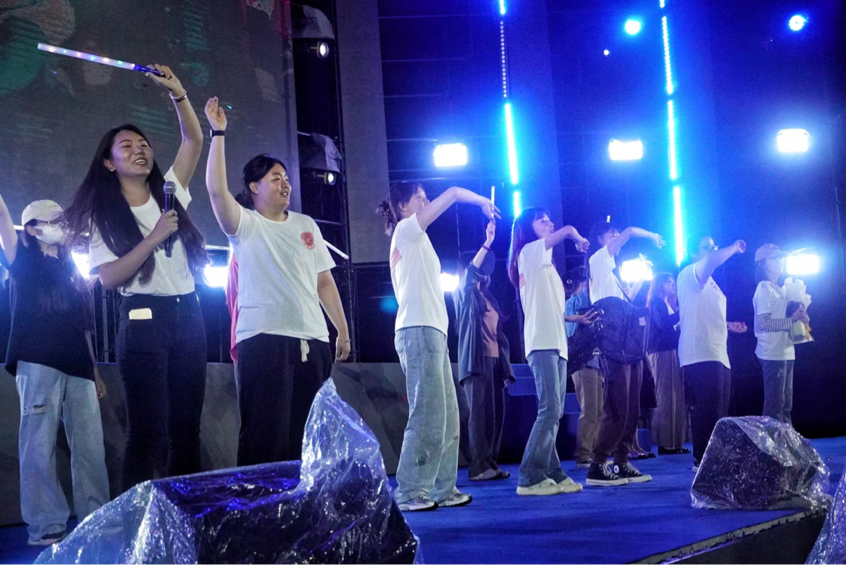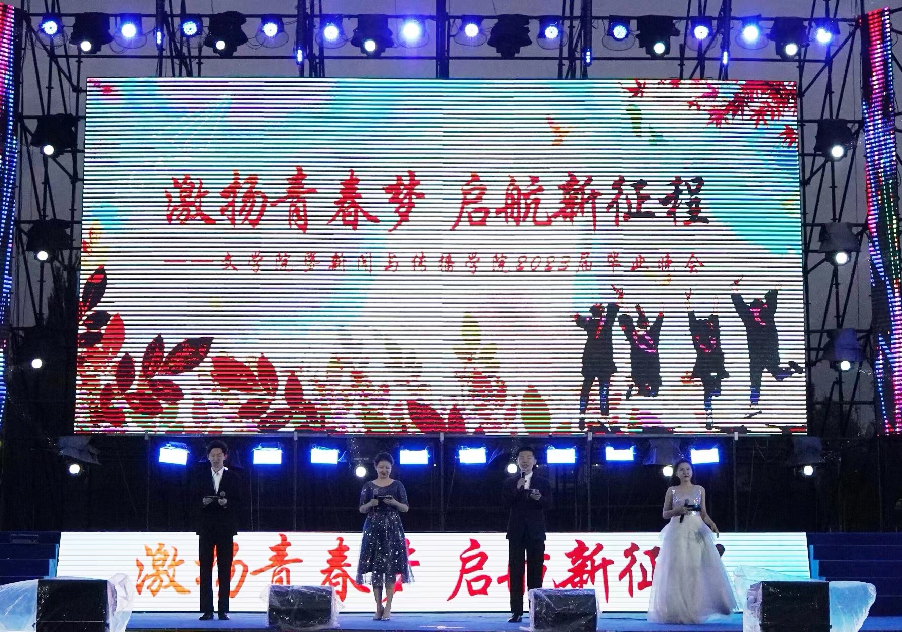 2023届毕业晚会在中心校区田径场上准时开始。