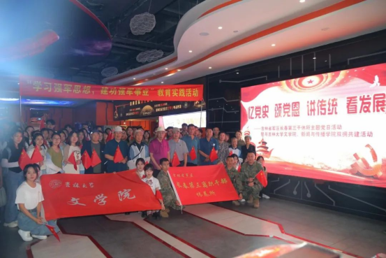 师生党员与吉林省军区长春第三干休所的老首长、老党员们共同举办了“忆党史、颂党恩、讲传统、看发展”双拥共建主题党日活动,学生党员认真聆听“光荣在党50周年”老首长讲话,共同观看红色影片《力量密码》,在榜样力量的感召下更加坚定了初心、信仰与使命。