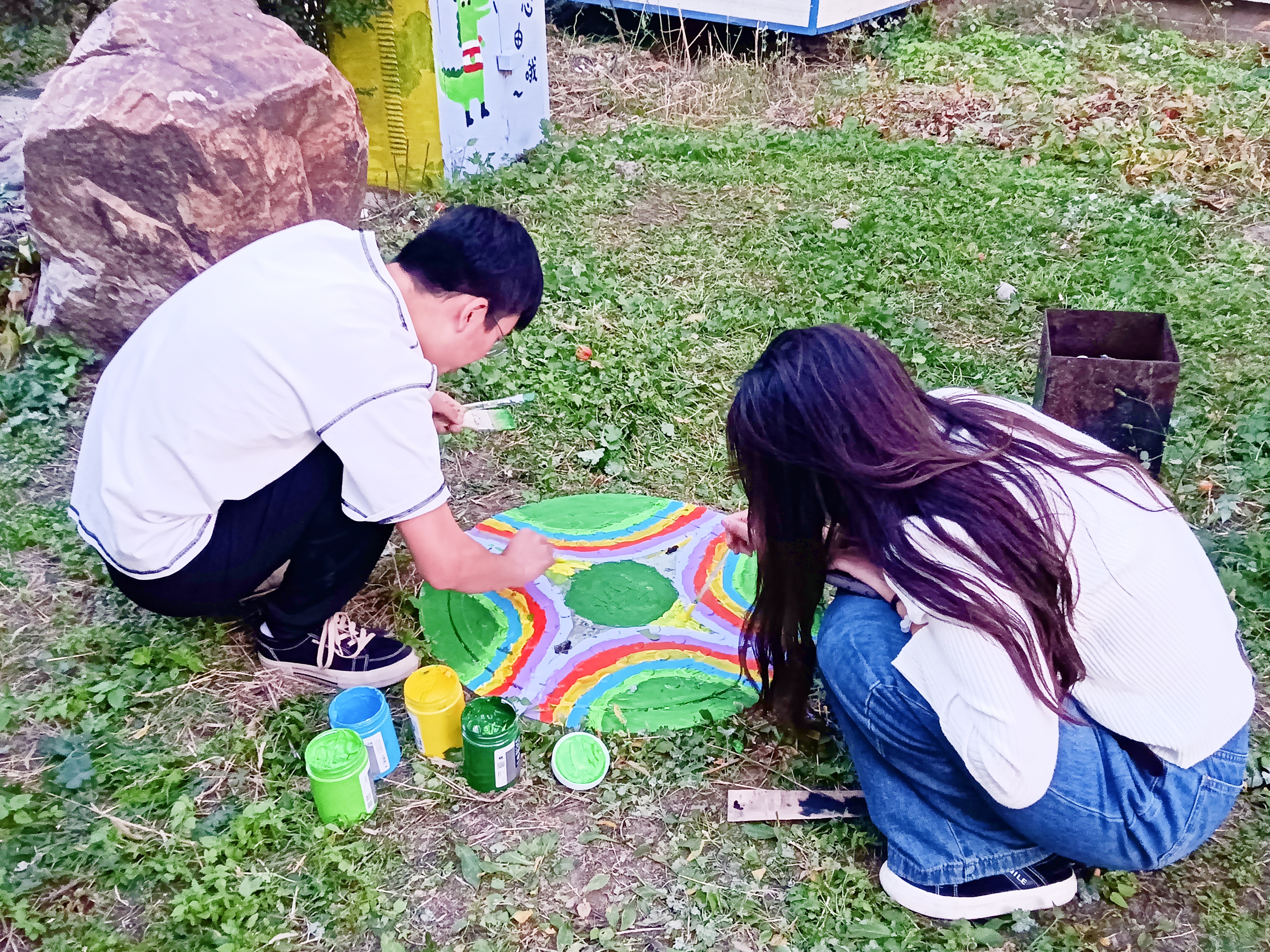 组织学生志愿者热情参与到此项目中。志愿者们在园区内创作了一系列以简约可爱风格为主的彩绘,这些作品不仅美化了社区环境,为居民的日常生活带来了新的色彩,也提升了他们的生活幸福感。