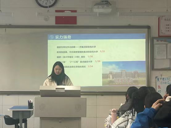 宣讲团队成员走进高一、高三,分享经验,宣传吉大。在本次返校宣讲中,团队成员以高考“过来人”和吉大“代言人”的双重身份展开,在吉大招生官方PPT的基础上加以美化修改,增加高中学习经验的分享与“互联网+吉大”的自制视频,积极调动现场氛围,走近同学们。同时,成员从自身实际出发,分享自己的学习经验。