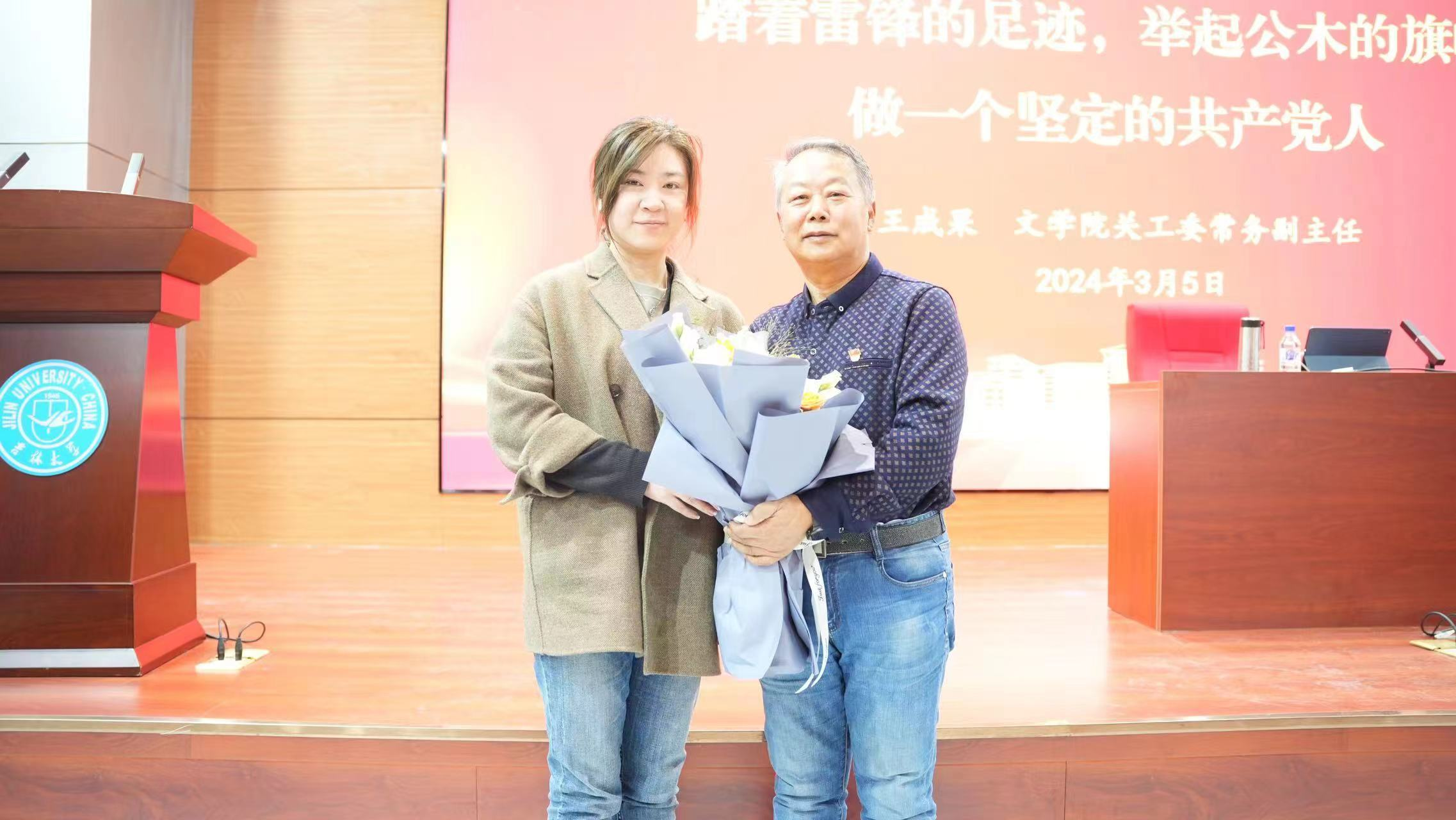 在报告中,王老师作为一名老党员、老教师从雷锋同志的三段日记出发,引导同学们作为新时代文传学子要学习雷锋精神,释放出无私奉献、踔厉奋发的青年豪气。接着王老师从雷锋同志的“螺丝钉”精神,引到公木先生作为一名共产党员的奋斗历程,充分体现了公木先生的北上精神,面对困难不畏惧、不退缩,勇往直前的英雄豪气!向同学们介绍了公木先生除文学艺术上的成就和造诣外,作为一名老党员的坚定信念与无私奉献精神。