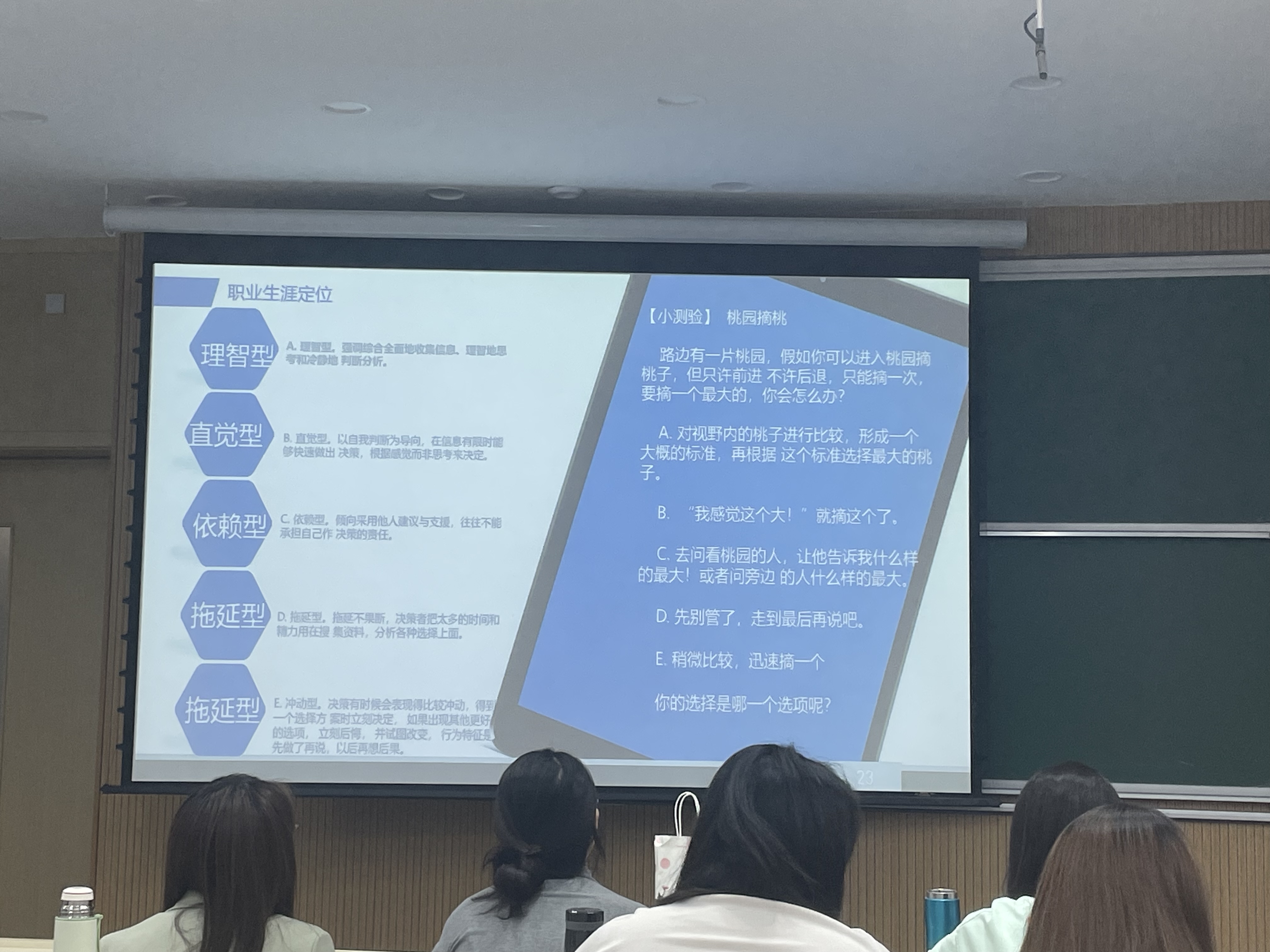 第一个环节,临近大四学年,杨佳欣老师着重在实习和就业招聘等职业规划方面向同学们分享了大量的信息,提出了全面有效的指导建议。杨佳欣首先介绍了当前就业市场的形势,鼓励同学们积极参加各类招聘活动。在国家政策方面,同学们了解到了国家公务员考试、各类选调、“三支一扶”、部队文职以及“西部计划”等政策性就业信息,并就此类信息进行了深度分析和拓展交流。紧接着,杨佳欣提到,极速飞艇