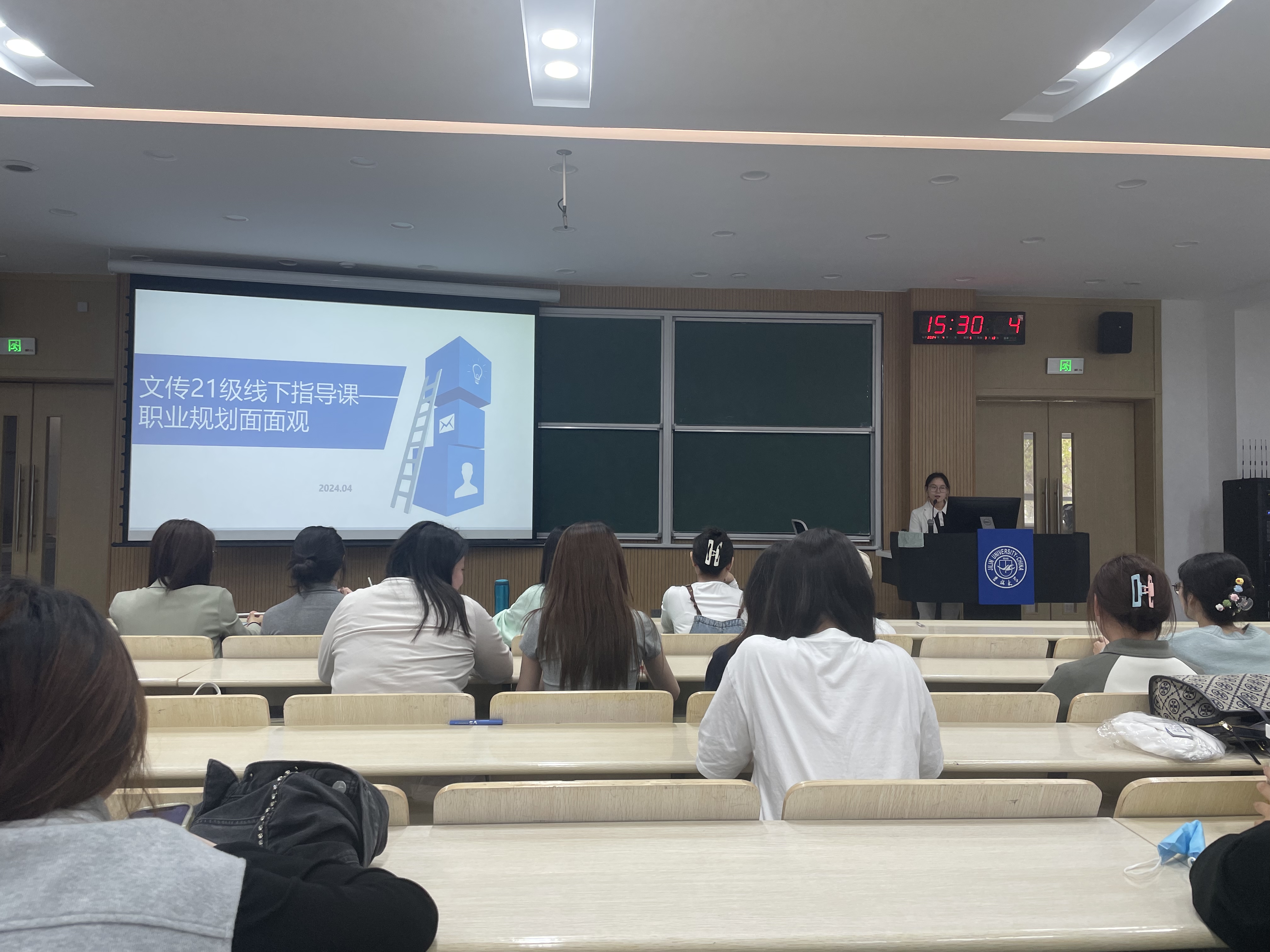 2021级年级大会暨就业指导线下课于逸夫教学楼第七阶梯教室圆满召开,会议就多项重要事项进行了详细讨论和安排。本次大会中,2021级同学准时到场,辅导员杨佳欣老师主持会议,各项议程有序进行。