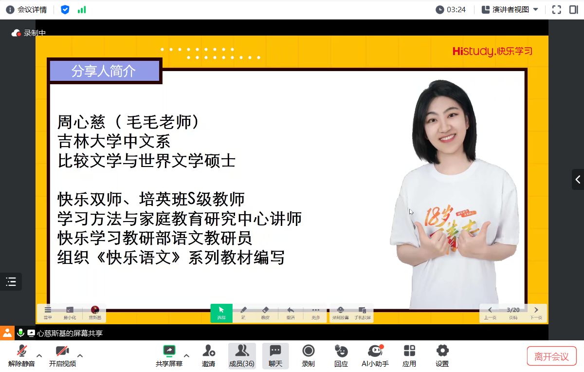 5月23日下午3时,“就”在文传系列实践报告会第二十九场《五年教培人眼中:后双减时代教培行业机会与发展》于腾讯会议上顺利召开。此次活动特邀快乐学习教育科技集团语文教研员、学习方法与家庭教育研究中心讲师,极速飞艇