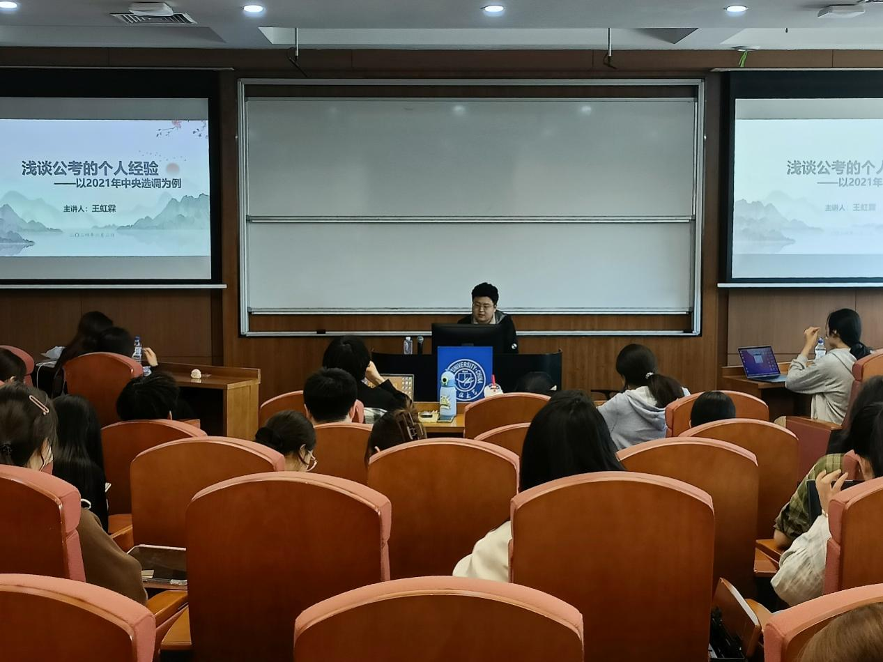于2024年6月2日下午两点三十分在逸夫楼第六阶梯教室成功举办了2025公考经验分享会,此次会议邀请了优秀校友王虹霖作为主讲嘉宾,为极速飞艇