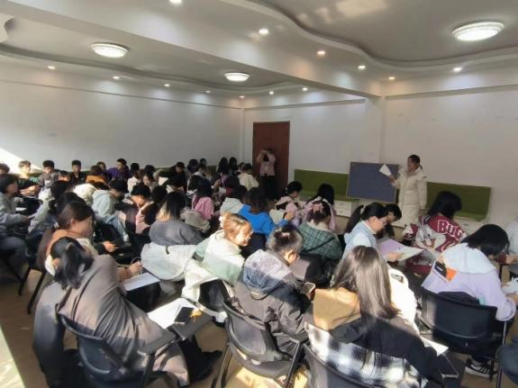 2024级中文基地班举办心理团辅活动时,心理委员组织大家进行了暖场游戏“东问西答”。游戏结束后,进入烦恼分享环节,同学们在主动分享自己苦恼的同时也积极参与到舒缓方法的讨论中,共同排解心中的烦恼。