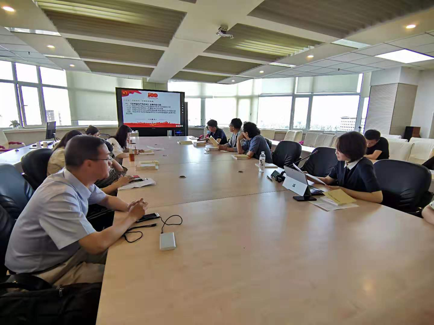 2021年6月24日上午9时,中共新闻、传播及广播电视艺术系暨吉林省传播学会教工联合党支部在东荣大厦召开了支部大会。按照党史学习工作安排,本次学习教育工作为处级党员领导干部到所在支部、党支部书记在所在支部讲专题党课。本支部党员、学生支部党员共同参加了此次会议。