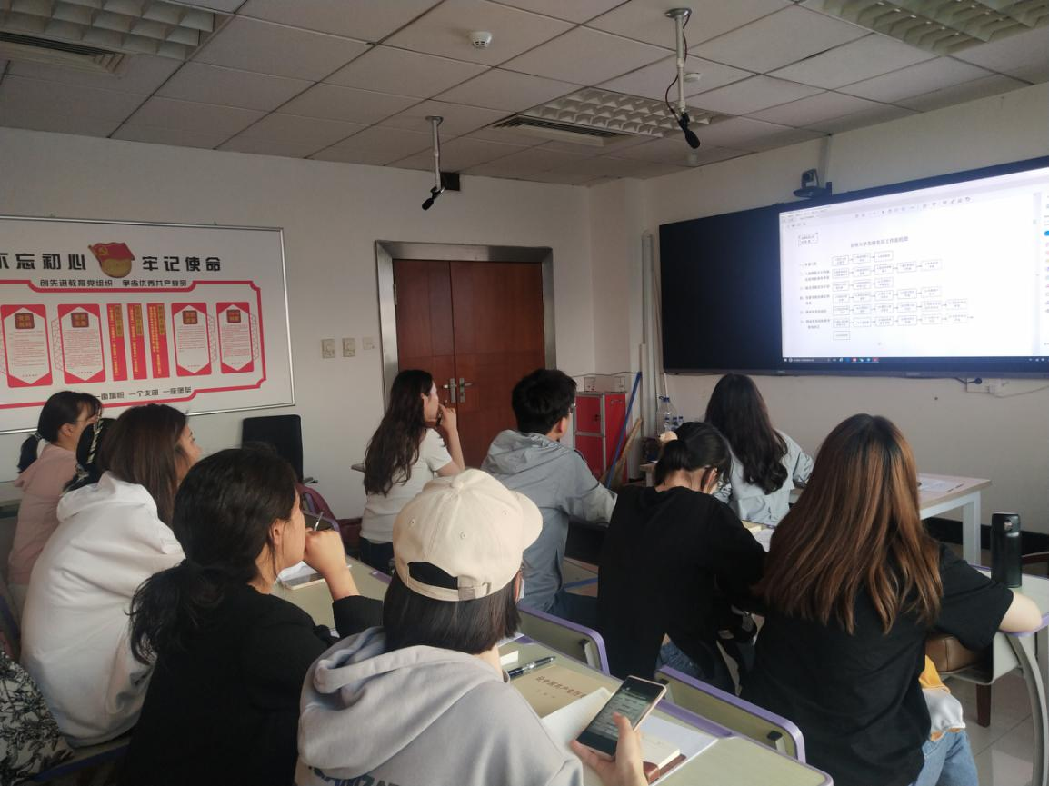 本次活动分为党务工作流程培训和党的理论学习教育两部分。首先,孙莹作为主讲人开展党务工作流程培训,开篇理清党的组织体系和党的基层组织的构成,对基层党委、党总支、党支部、党小组以及临时党支部之间的关系、承担的不同责任进行了区分。