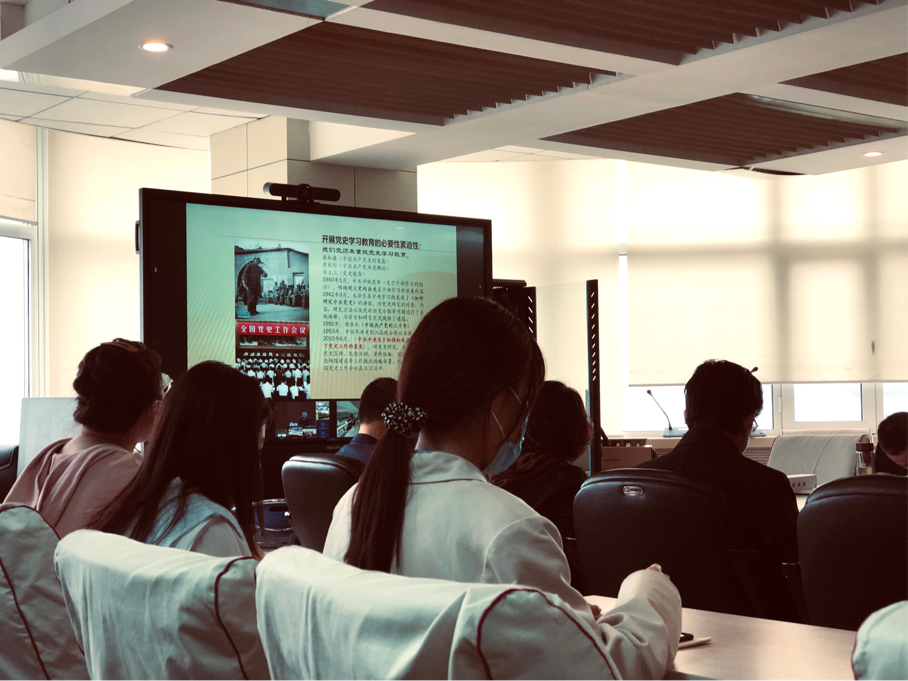 全体处级领导干部、党委委员、纪委委员、各系教工党员、学生党支部书记和支部委员于东荣十楼会议室在线观看视频直播,进行学习。