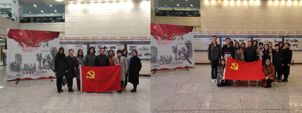 党委组织行政教工党支部与2015级本科生第一、第二党支部党员开展 “纪念长春解放70周年” 主题党日活动,在党委书记康永刚的带领下,近20名师生党员赴吉林省图书馆,参观“《名城光复》——纪念长春解放70周年档案史料展”,瞻仰英模事迹,学习先烈精神。