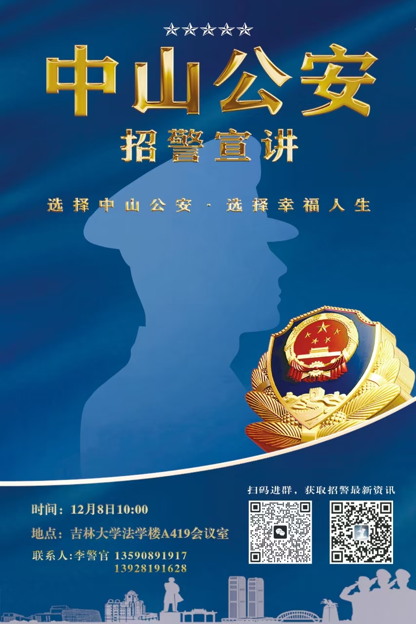 志合者,不以山海为远!根据工作安排,广东省中山市公安局拟于近期开展“招警宣讲会”,届时将对就业选择、定居城市进行解读,共同谋划未来职业道路。