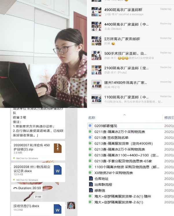 2017级庄璐同学加入到天津自家社区防疫站,积极参与疫情防控宣传,利用专业特长为社区每天录制各类宣传语和疫情防控措施等内容。在夜晚中午的时候,加入到繁忙的登记测温的队伍中,为社区工作者多争取些吃饭休息的时间。2017级贾培峰同学主动加入家乡巴彦淖尔市乌拉特中旗村委会防疫战中,帮助村子封锁道路、严查过往车辆、清理生活垃圾和跟随运输的车辆送物资,和村民清理积雪,开辟出一条通往山里的路,成为村中“快递员+宣传员”,根据村民电话中的需求,将物资送到他们的家中,为村民们普及最新的疫情发展的信息。2017级黄灏同学加入“高原鹅”高校学生援鄂行动、“武心援”志愿团队两个志愿服务组织,在团队中主要负责收集信息,沟通联络志愿者、厂家、海外代购等渠道,以及检验已有资源,共享信息等工作。加入以来,该生与十余名志愿者成功沟通了解,分享信息。与四个厂家进行联系,积极从联系海外渠道筹备抗疫物资,收集物资提供有用信息。并从线上为一些患者答疑,缓解患者紧张情绪。