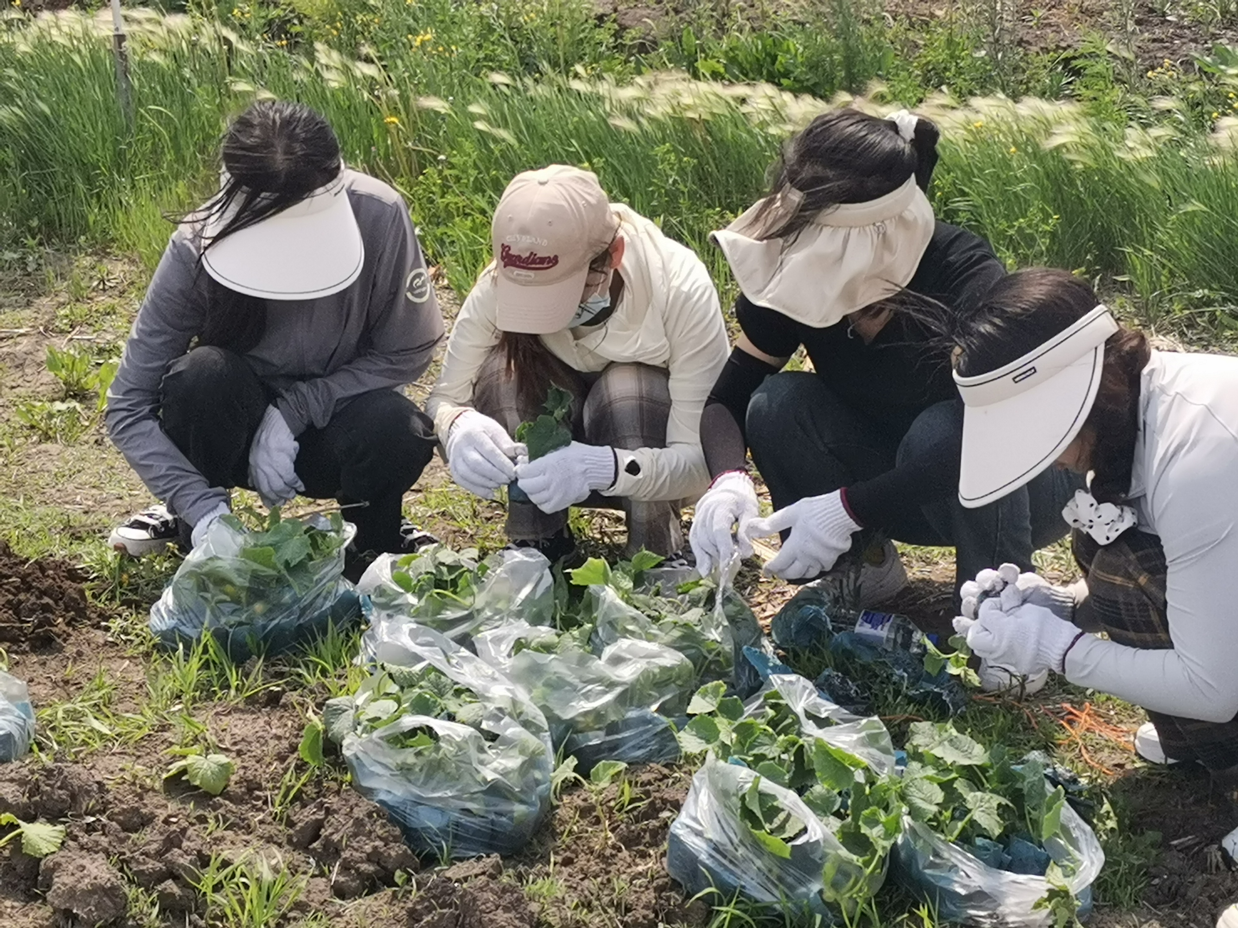 农业实验基地。在专业农技人员的指导下,近距离观察了茄子、地瓜、黄瓜等农产品的生长环境,学习种植的知识和技巧,田野上的课堂教学使同学们获益匪浅。翻土、浇水、栽苗……一项项劳动实践将活动推向高潮。在活动的整个过程中,同学们分工明确,团结协作,确保了活动的顺利进行。这次活动不仅是一次简单的劳动实践,更是一次心灵的洗礼,让同学们在劳动中感受到了党性的力量,也进一步增强大家的纪律意识。